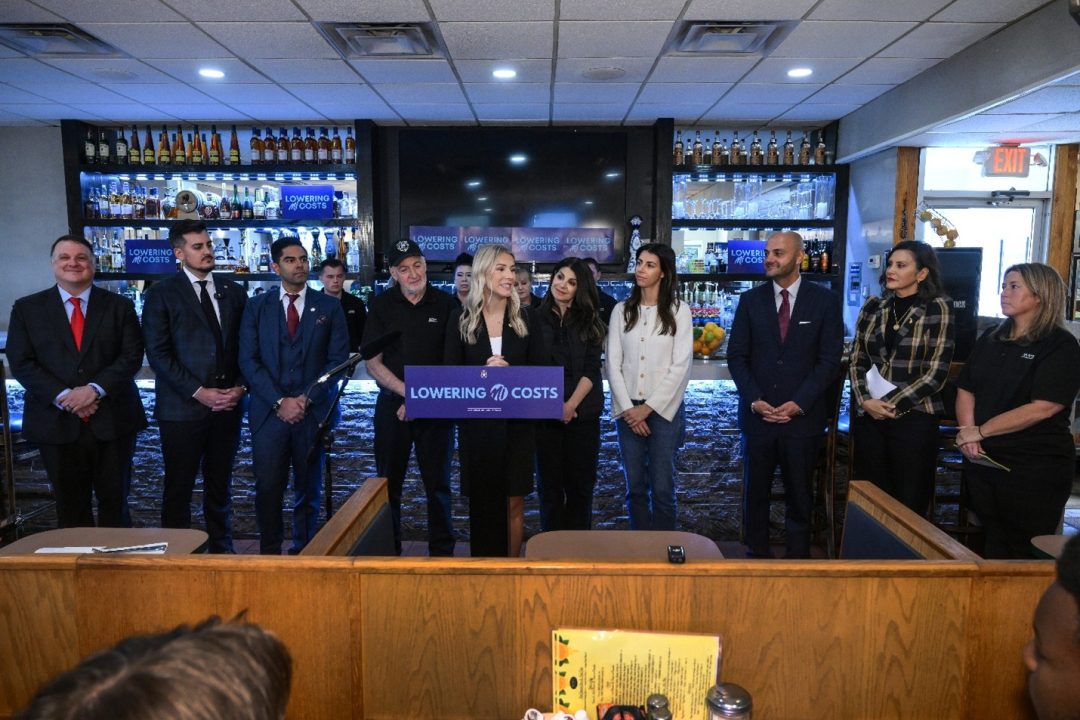 PHOTO INFORMATION: State Rep. Rylee Linting (at podium) speaks on the budget signing for the new fiscal year on Wednesday, Oct. 8 at Mom’s Restaurant in Trenton, which Linting represents as part of the 27th House District.
